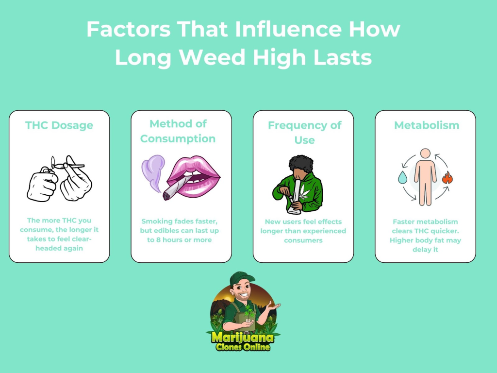 The more THC in your system, the longer it takes to wear off. A single hit from a low-potency strain might fade in an hour. A strong edible can hang around much longer. Large doses flood the system and take time to clear.